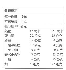 成 份:麵粉、糖、奶油、雞蛋、核桃、杏仁、 南瓜子、食鹽
