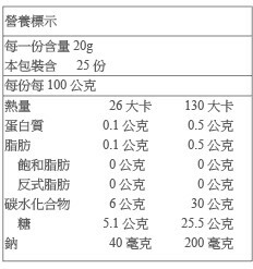 內容物 :金柑、麥芽糖、砂糖、葡萄糖、檸檬酸、食鹽